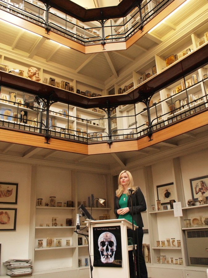 Medical historian Dr. Lindsey Fitzharris delivers a keynote talk at Death Salon UK, April 2014. Photo by Megan Rosenbloom.